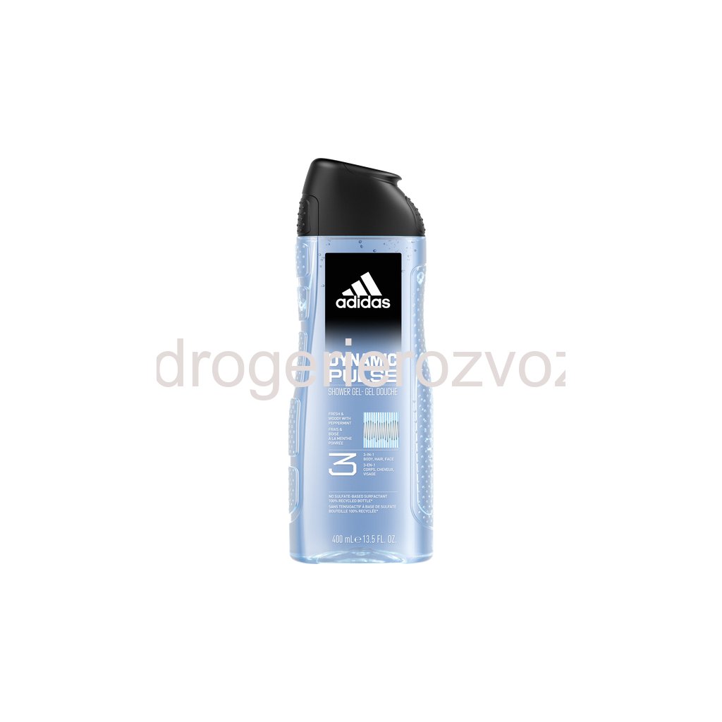 - Sprchový gel Adidas Dynamic Pulse se svěží dřevitou vůní obsahující přírodní rozmarýnový a citrónový esenciální olej