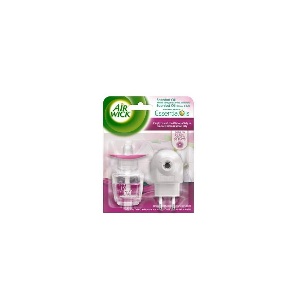Air Wick Elektrický strojek - osvěžovač vzduchu s náplní Smooth Satin&Moon Lily 19 ml, dodává hřejivou a stálou dlouhotrvající vůni, dle zvolené intenzity vydrží až 80 dní.