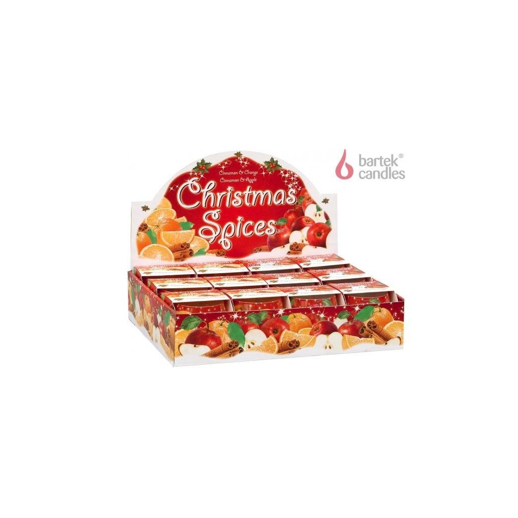 Parafínová vonná svíčka v kulaté skleničce s vůní pomerančů nebo jablka zabalená v papírové krabičce se stejným motivem. Hmotnost: 115g. Velikost: 9 x 9 x 9 cm.