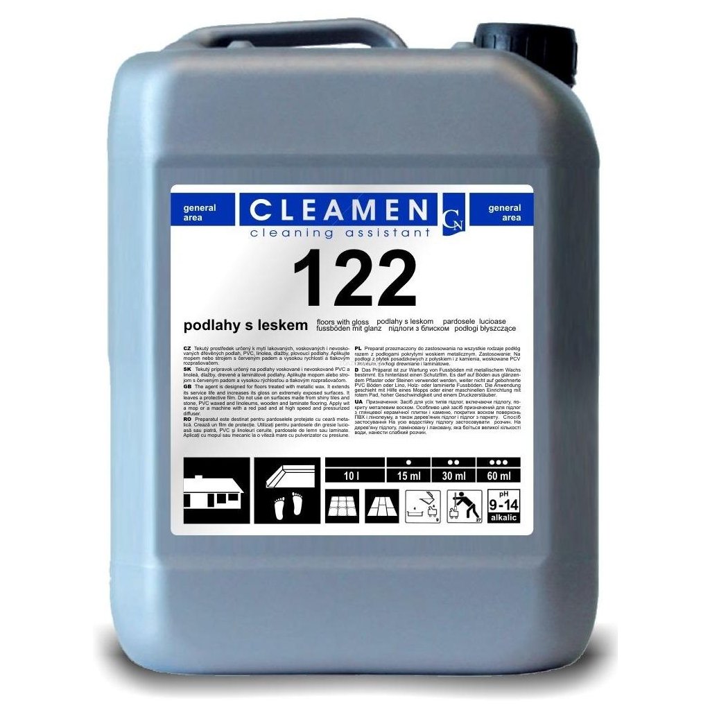 Specifikace Cleamen 122 podlahy s leskem 5 l Popis produktu Prostředek je vhodný na všechny typy podlah včetně podlah ošetřených metalickým voskem. Zejména je určen na podlahy z lesklé dlažby a kamene, voskovaná PVC a linolea, dřevěné a laminátové (plovoucí ) podlahy. Podlahám dodává lesk a oživuje barvy, příjemně voní. Na všechny vodě odolné podlahy použijte naředěný roztok dle tabulky do vědra a pracujte s mopem. Na laminátové (plovoucí) a lakované dřevěné podlahy, které nesnesou větší množství vody aplikujte pouze mírný rozprach z tlakového rozprašovače a mikrovláknovým mopem setřete uvolněné nečistoty. Dávkování provádějte pomocí dávkovacího uzávěru 5-30 ml. Míra znečištění ? ?? ??? sprejové čištění ml/1 litr 2 4 8 pH roztoku 7,3 7,5 8,1 do vědra ml/10 litrů 15 30 60 pH roztoku 7,2 7,4 8 pH koncentrátu : 9 Seznam nebezpečných látek a zásady bezpečnosti práce jsou součástí Bezpečnostního listu. Po naředění výrobku na méně než 30% roztoku, přípravek již nespadá do klasifikace nebezpečných chemických látek. Přípravek je pěnivý, není proto vhodný pro strojní čištění podlah.