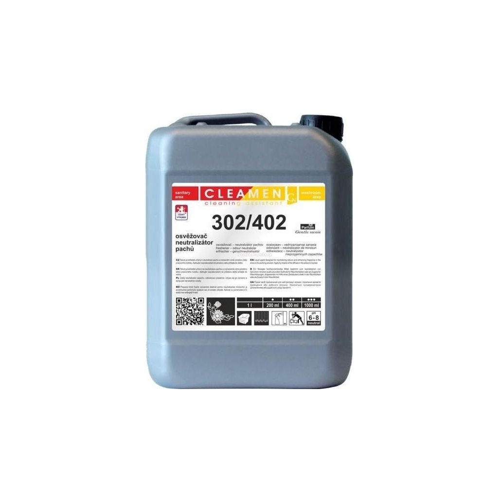Specifikace Cleamen 302/402 neutralizátor pachů sanitární 5 l Popis produktu Neutralizátor pachů a sanitární osvěžovač. Účinně rozkládá pachy a zanechává svěží vůni. Používá se s rozprašovačem nebo jako přídavek do věder k mopování nebo vytírání. Neutralizátor je možno rozprašovat koncentrovaný, nebo zředěný dle tabulky na stěny, sanitární vybavení, nebo do prostoru. Prostředek se zcela odpaří a po odpaření nezanechává zbytky ani skvrny. Při použití v čisticím roztoku zvyšuje parfemační účinek. Lze použít samostatně do vody, nebo spolu s ostatními čisticími prostředky Cleamen a Krystal.