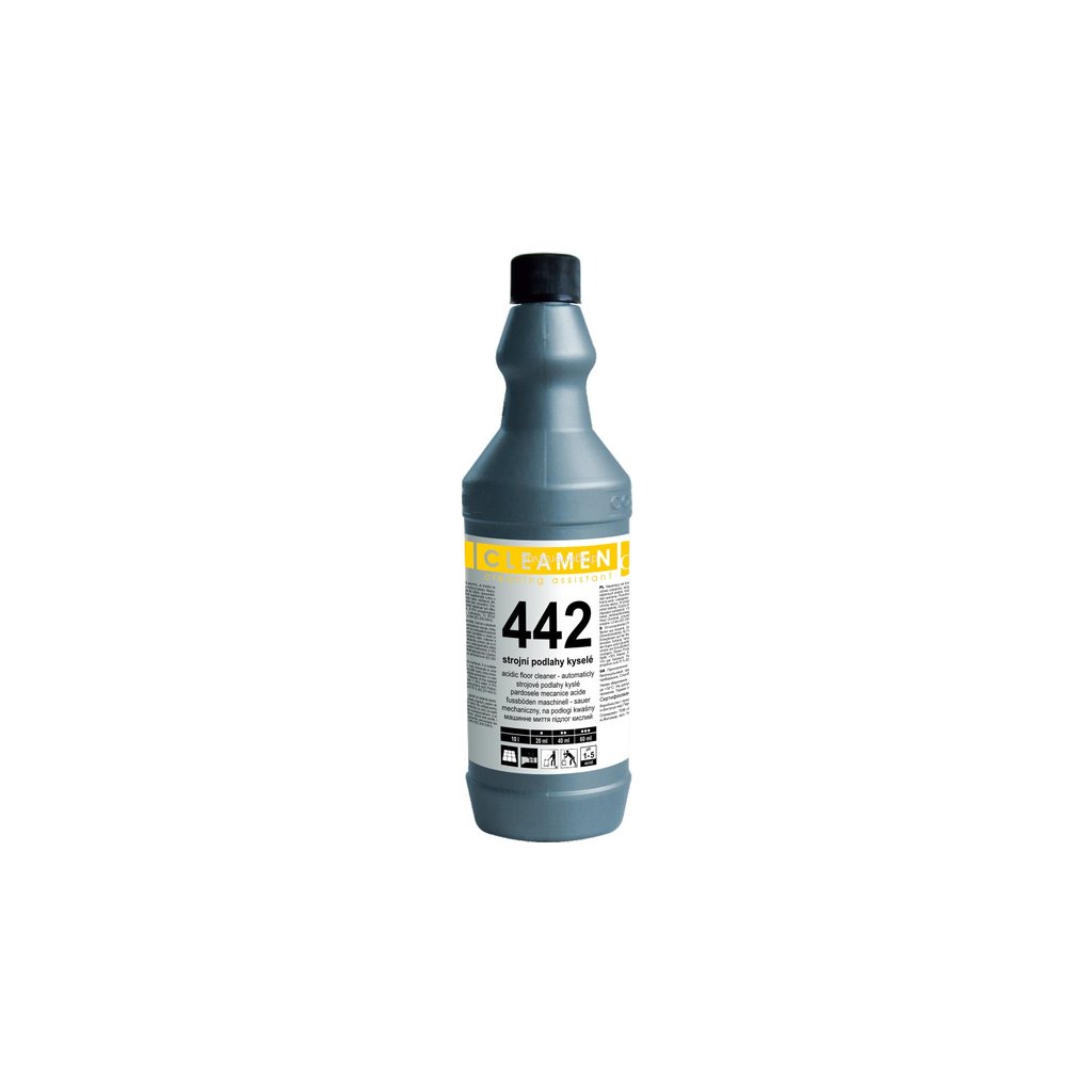 Výrobek je určen výhradně pro profesionální použití. CLEAMEN 442 na podlahy kyselé 1 l - koncentrovaný nepěnivý prostředek určený k ředění na tvrdé povrchy odolné kyselinám jako jsou keramické a žulové plochy. Je vhodný na postavení úklid kde dosahuje vynikajících výsledků hned po prvním použití.Účinně působí na cementové zbytky, hlinky po malování,cementové závoje, hořečnaté a minerální usazeniny - rez a vodní či močový kámen. Poradí si s reliéfní – protiskluznou dlažbou a vyšlapanými cestičkami v broušených dlažbách.