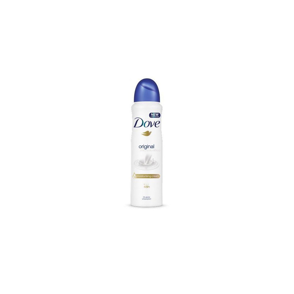 Specifikace Dove Original Woman deospray 150 ml Popis produktu Antiperspirant ve spreji Dove Original poskytuje dokonalou ochranu proti pocení po celých 48 hodin a zároveň díky ¼ hydratačního krému pečuje o jemnou pokožku podpaží. Neobsahuje alkohol a nedráždí tak pokožku ani po holení. Jemná mýdlová vůně antiperspirantu vám zaručí, že budete svěží po celý den a nepřekryje vůni vašeho parfému.