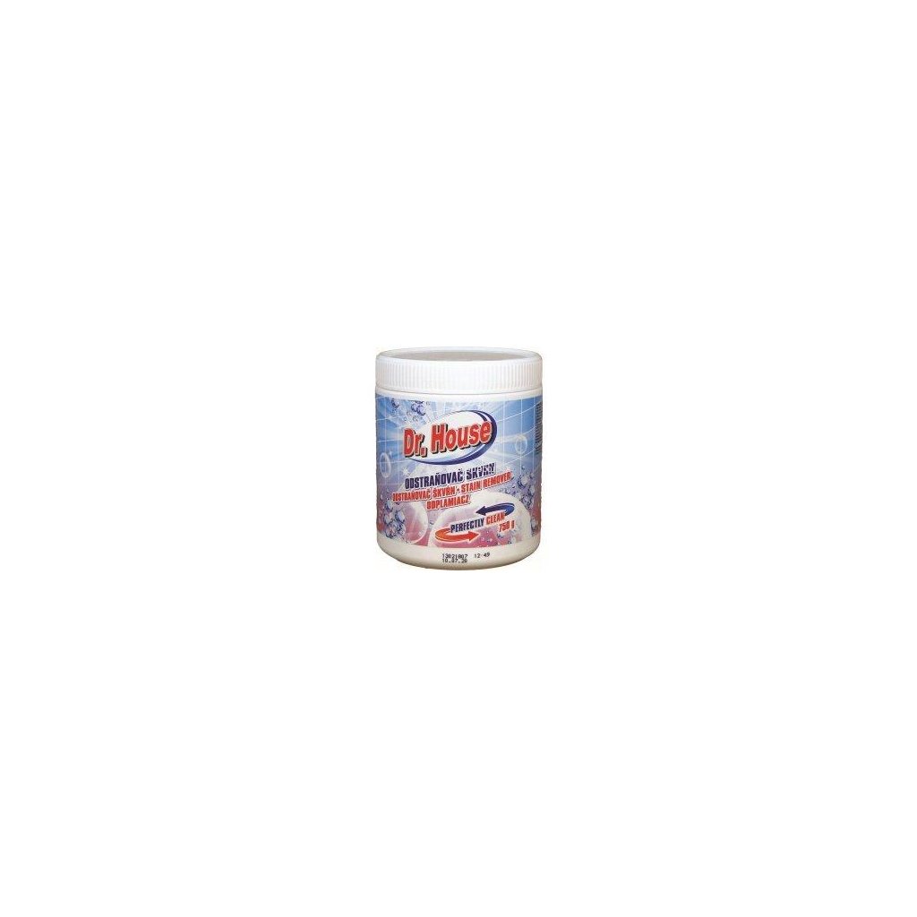 Specifikace Dr. House odstaňovač skvrn sypký 750 g Popis produktu Dr. House750 g odstraňovač skvrn sypký - odstraňovač skvrn v prášku. Přípravek na odstranění i silných skvrn (káva, čaj, červené víno, ovoce, tráva apod.). Možno použít i na barevné prádlo, čalounění a koberce. Velice účiný.