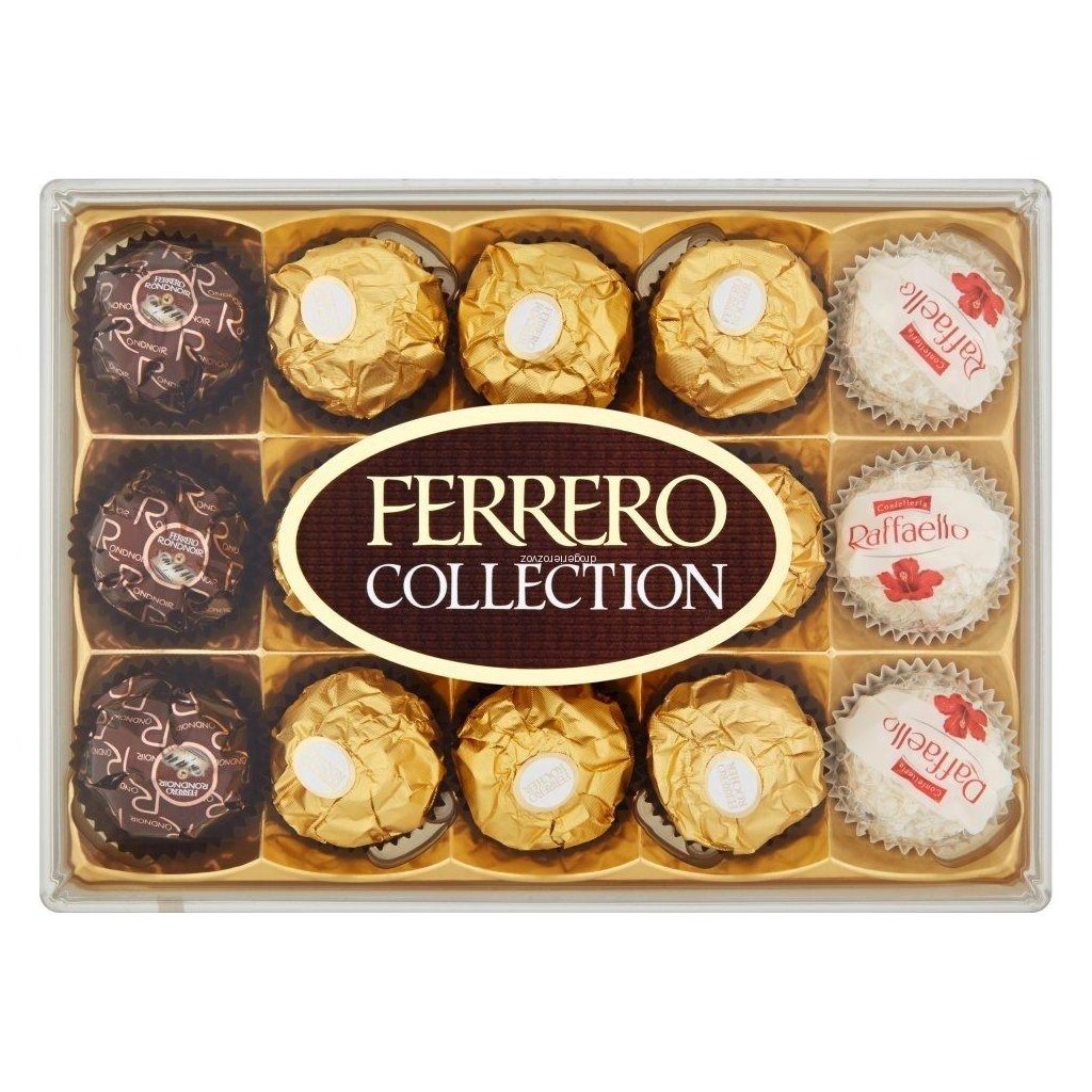Kombinace pralinek Ferrero Rocher, Rondnoir a Raffaello.
