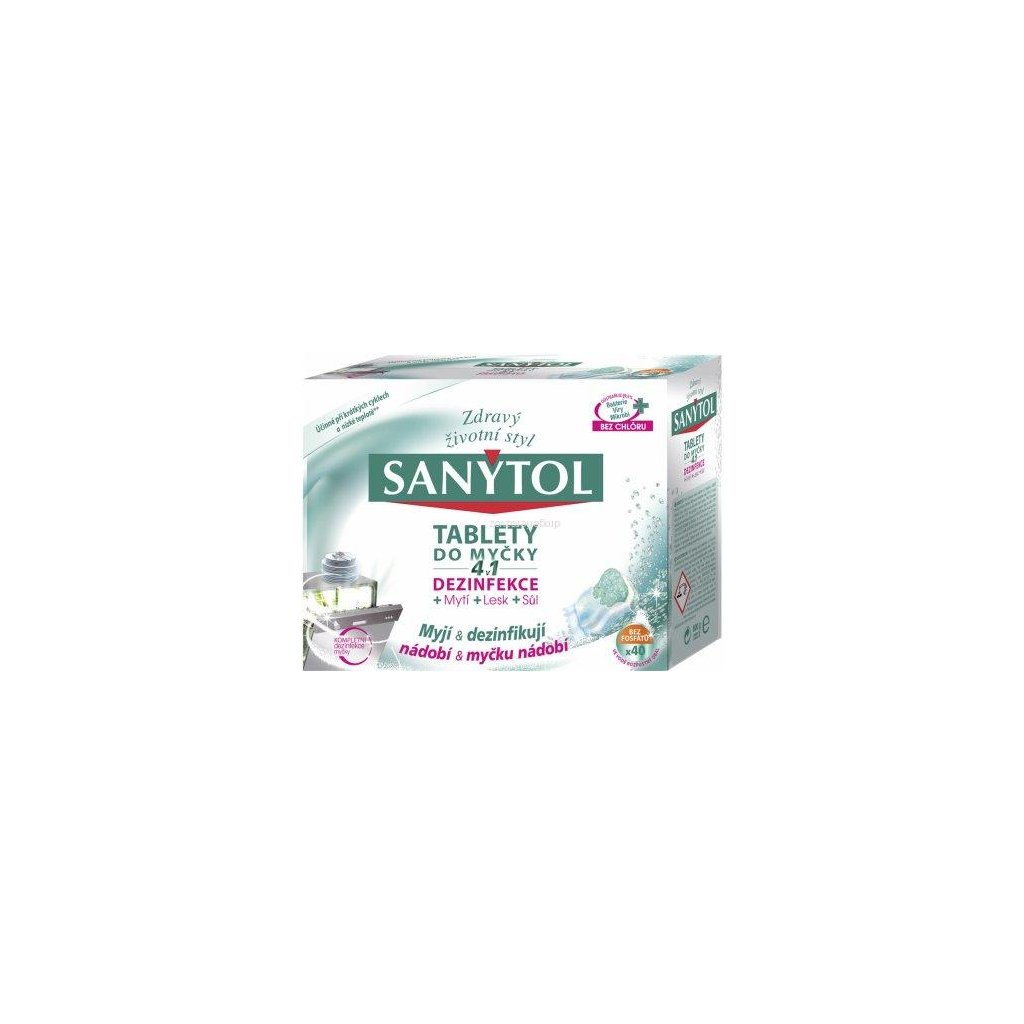 Sanytol tablety do myčky kombinují v sobě dezinfekci, účinné mytí, lesk a sůl. Myjí a dezinfikují nádobí a myčku bez chlóru. Jsou účinné při krátkých cyklech a nízké teplotě. Jednotlivé tablety jsou baleny ve vodě rozpustném obalu.