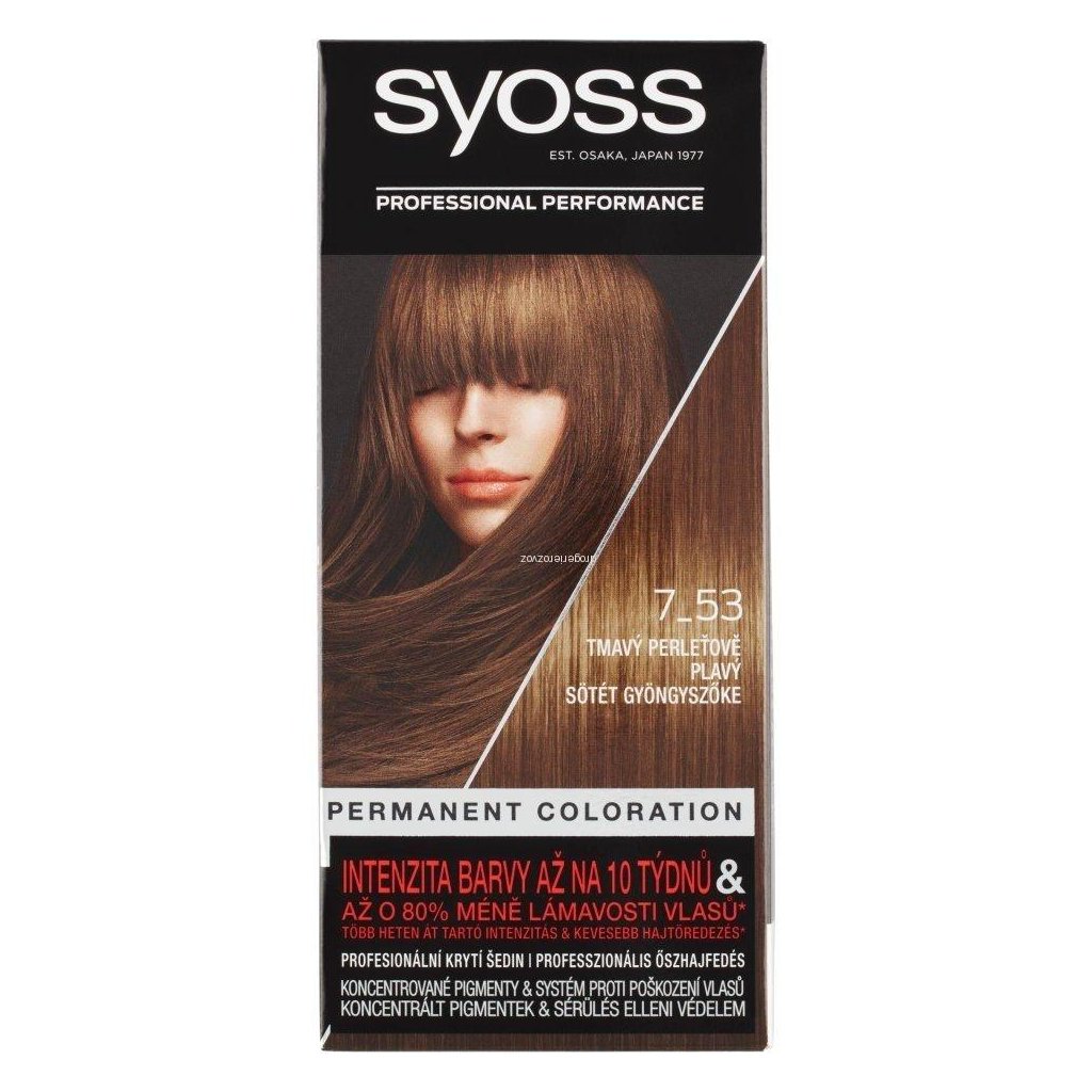 Syoss Professional 7-53 tmavý perletově plavý Vysoce účinná receptura vlasových barev SYOSS uzavírá intenzivní barvicí pigmenty hluboko uvnitř vlasu pro dosažení dlouhotrvající barvy plné lesku s extra péčí díky Nutri-Care komplexu. Každá žena miluje vzhled svých vlasů po návštěvě kadeřnického salonu. Vlasové barvy SYOSS přináší barevný výsledek v profesionální kvalitě k vám domů. Vlasové barvy SYOSS, vyvinuty a testovány kadeřníky, vám nabízí vysoce účinnou recepturu s intenzivními barvicími pigmenty, díky kterým je barva sytá, dlouhotrvající.