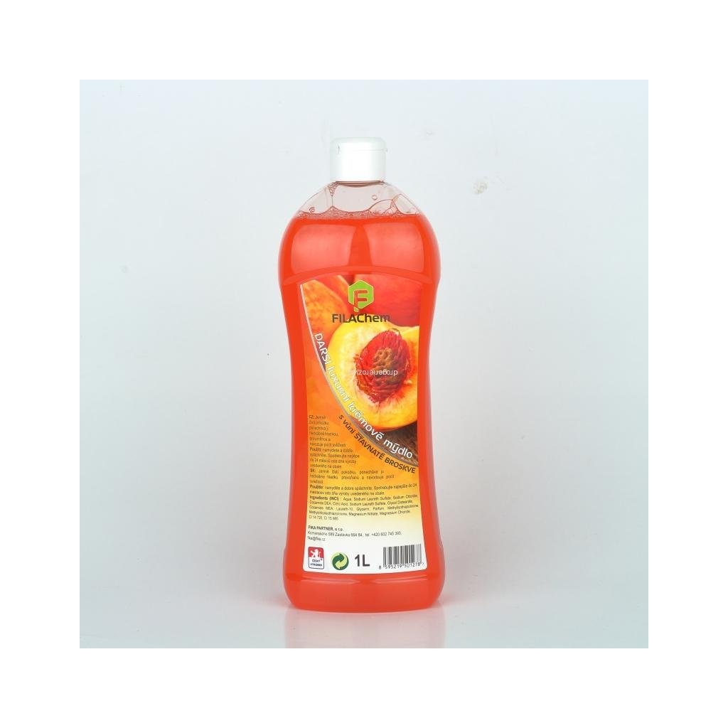 Tekuté mýdlo v vůní šťavnatá broskev 1l Luxusní krémové tekuté mýdlo s vůní šťavnaté broskve - Jemně čistí pokožku, ponechává ji hedvábně hladkou, provoněnou a navozuje pocit svěžesti Použití: namydlete a dobře spláchněte.
