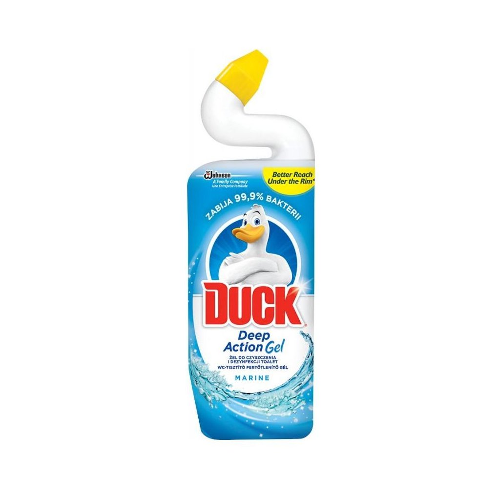 Specifikace Toilet Duck Fresh čistič Marine 750 ml Popis produktu Duck WC čistič Deep Action gel 750 ml Marine S pomocí tekutého čisticího gelu DUCK 5v1 Mořská vůně vyčistíte perfektně vaši toaletu. Na rozdíl od ostatních čističů se dostane dokonale i na místa pod obrubou WC mísy (ověřeno laboratorně). Po aplikaci tekutého čisticího gelu bude vaše toaleta čistá, zbavená vodního kamene i skvrn. Svěží vůně gelu Duck provoní příjemně celou místnost. Klíčové vlastnosti WC gelu DUCK 5v1 Mořská vůně WC gel DUCK dokonale vyčistí vaši toaletu Gel se dostane i na místa pod obrubou WC mísy Tekutý čisticí gel Duck účinně odstraní vodní kámen i skvrny Při použití provoní příjemná svěží vůně celou místnost